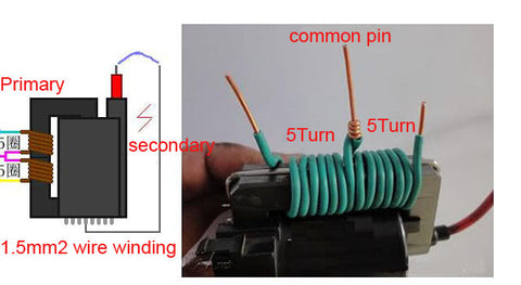 TO work with ZVS(Zero Voltage Switching) driver boad, it is necessary to add a new primary winding. One winds about 10 turns (1.5mm2 cross section) enamelled copper wire around the core, and a common pin is wired out as common pin.