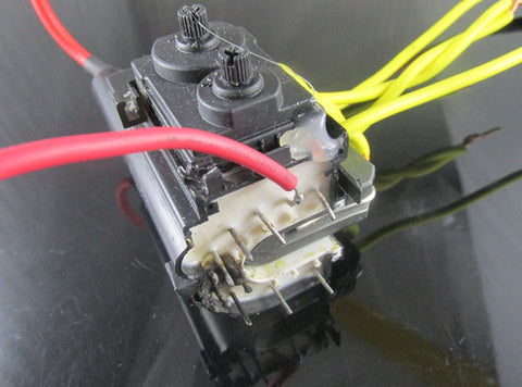 To prepare for the useful ones out of the vast number of connector pins a flyback usually has. the first thing is to cut off 2 wires and glued it since the 2wires will be not used anymore.