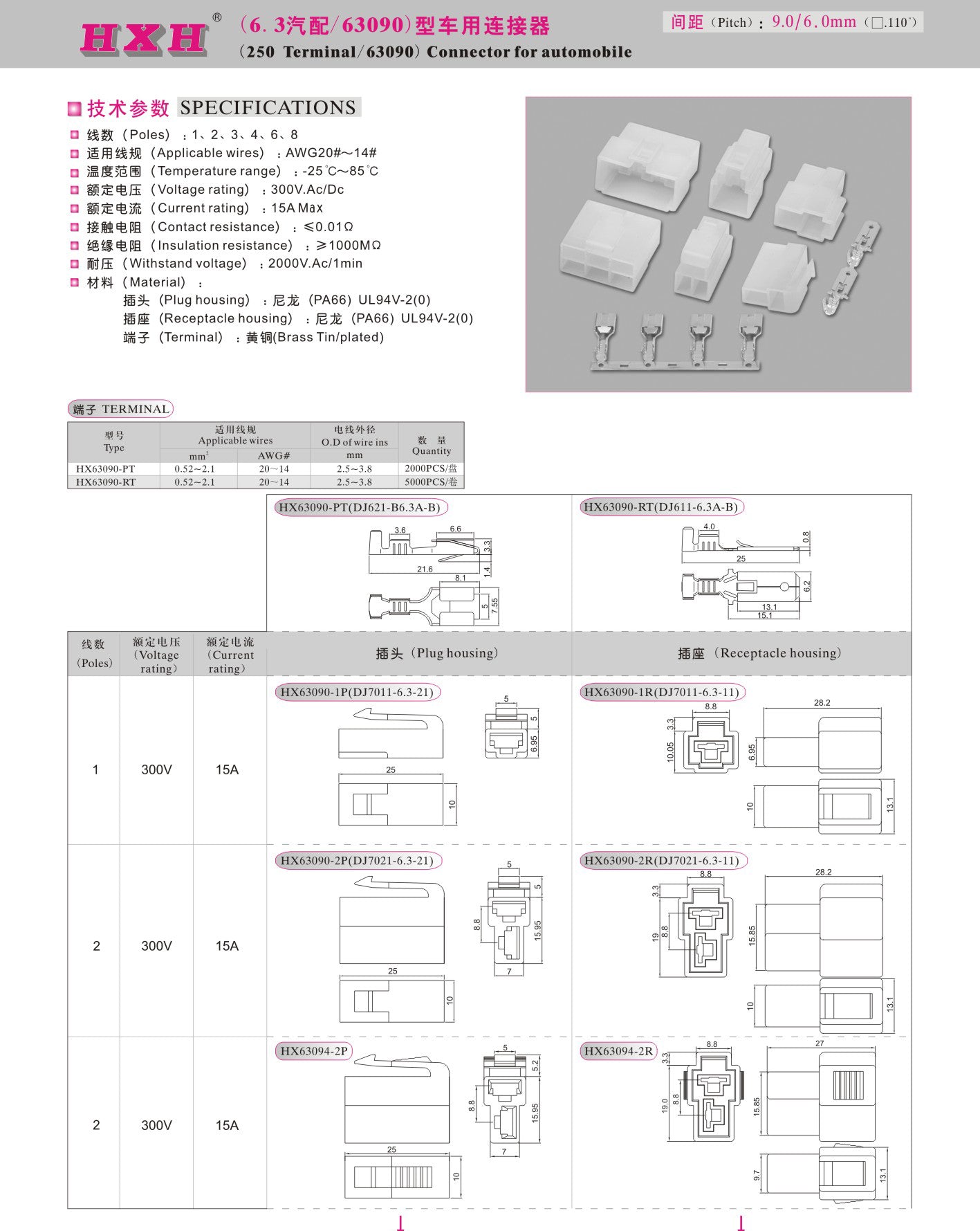 .250"(6.3mm Pitch) connector for automobile,
