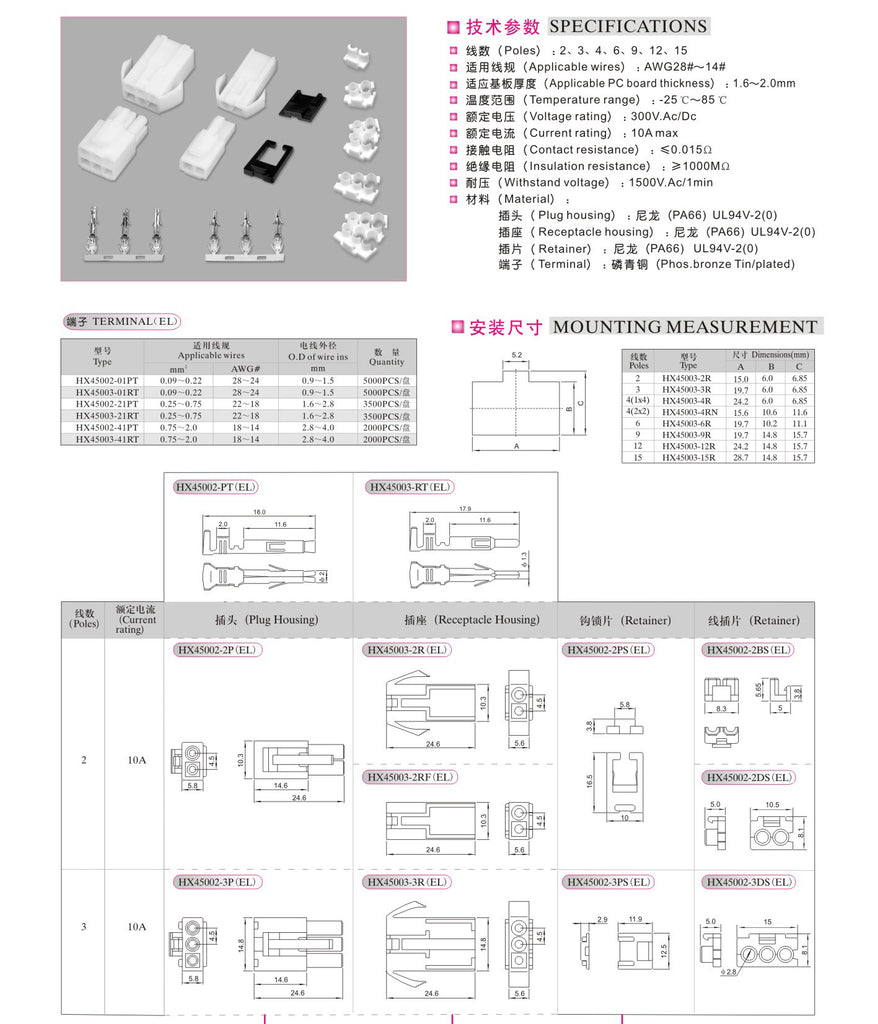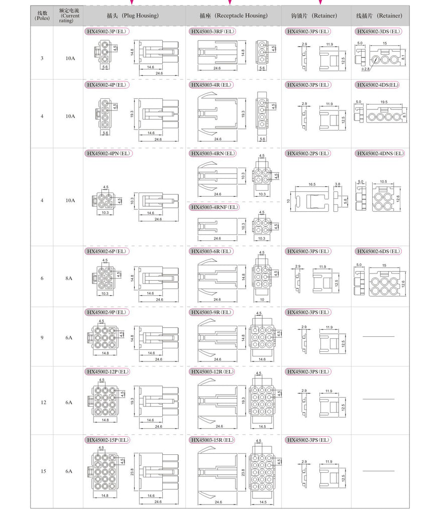 2.Receptacle Housing(HX45003-4RN): X100pcs