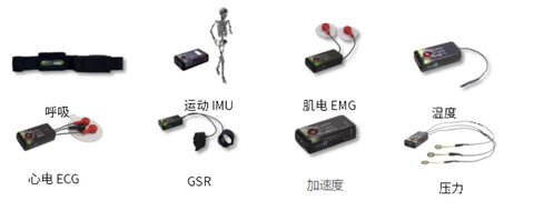 Simultaneously record the data of a variety of wireless sensors T-sens, including exercise IMU, ECG, EMG, GSR, breathing, temperature, etc.