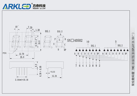 0.5 inch Segment led display 2-digit 7-Seg Common Cathode emitted Red