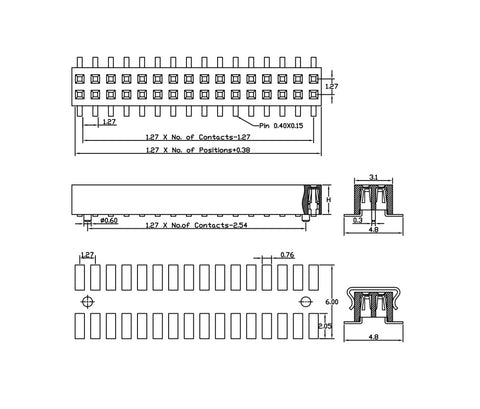 100pcs SMD 2x30Pin 1.27mm Female Header With Locating post SIP Socket Connector YLA-2443C